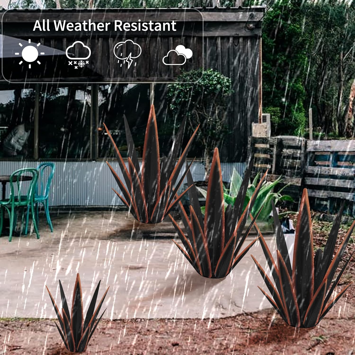 Large Tequila Rustic Sculpture, Rustic Metal Agave Plants for Outdoor Patio Yard, Home Decor Hand Painted Metal Agave Garden Yard Statue, Outdoor Lawn Ornaments Yard Stakes (Black -L)