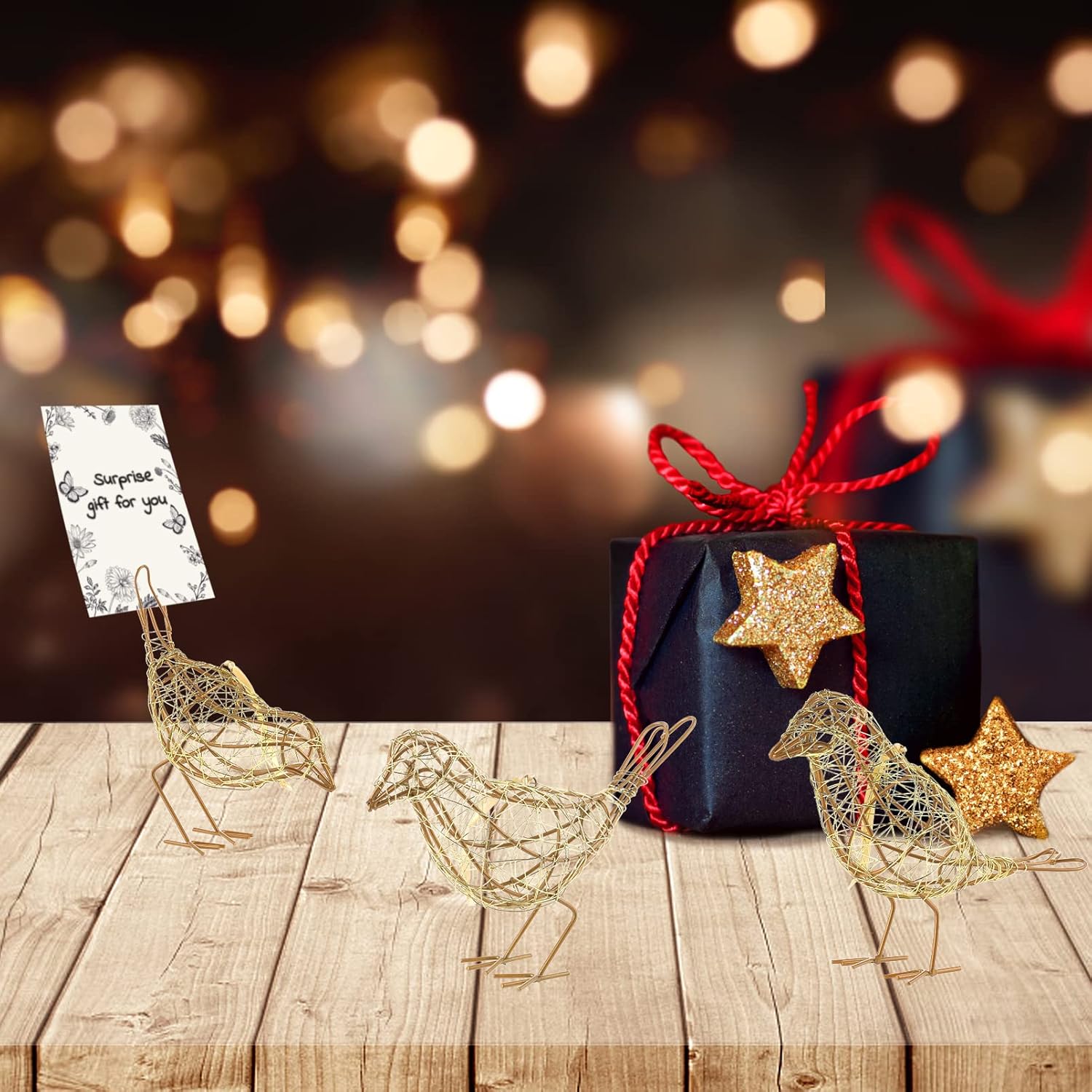 - [Luxury Metallic Accent] Handcrafted with gleaming gold-finish iron wires, these contemporary bird sculptures add refined elegance to modern farmhouse or glam interiors.