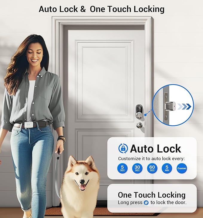 - Premium Security: Biometric deadbolt features auto-lock, one-touch locking, privacy mode, passage mode, secure mode and low battery alert, made with an anti-peeping and anti-hacking touchscreen keypad, IP54 Waterproof, keeping your home secure