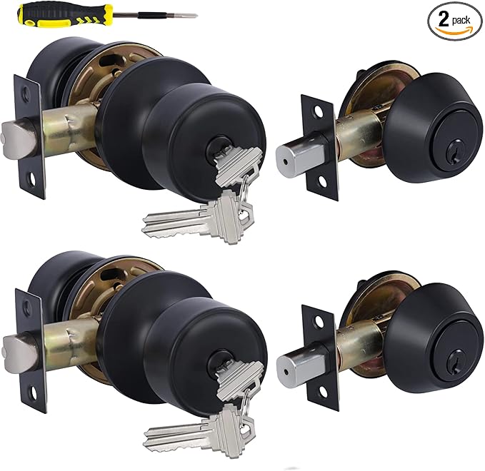 - EASY INSTALLATION: Install your door knob with deadbolt sets for front door lock in a flash, mounting screws and instruction and screwdriver are included, you can do it by yourself.