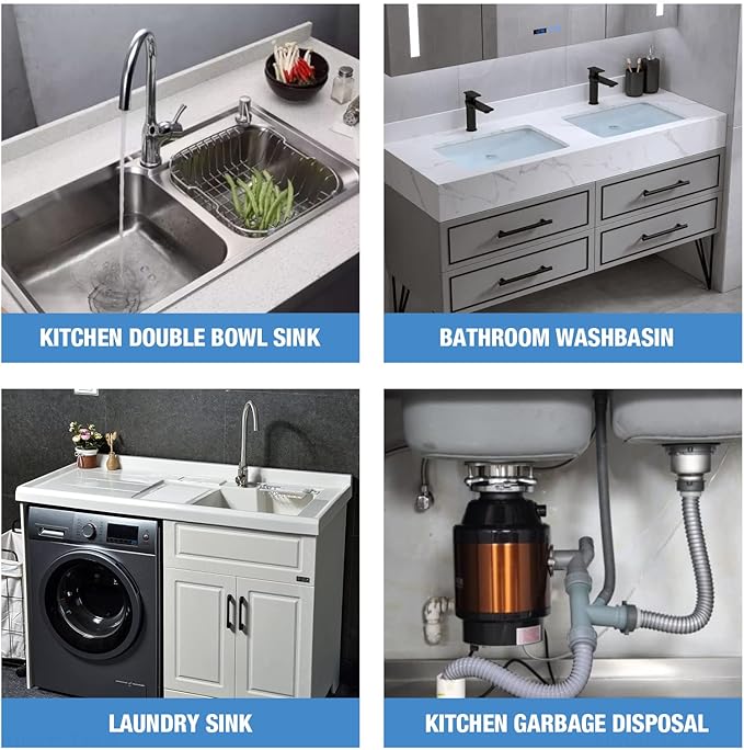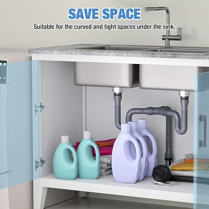 - ✅【Expandable & Flexible P-Trap】This P-trap features a drain pipe made of flexible material with a corrugated and stretchable design that can be adjusted between 8 and 20 inches. It is the perfect solution for fitting into curved and narrow spaces under the sink without taking up too much room.