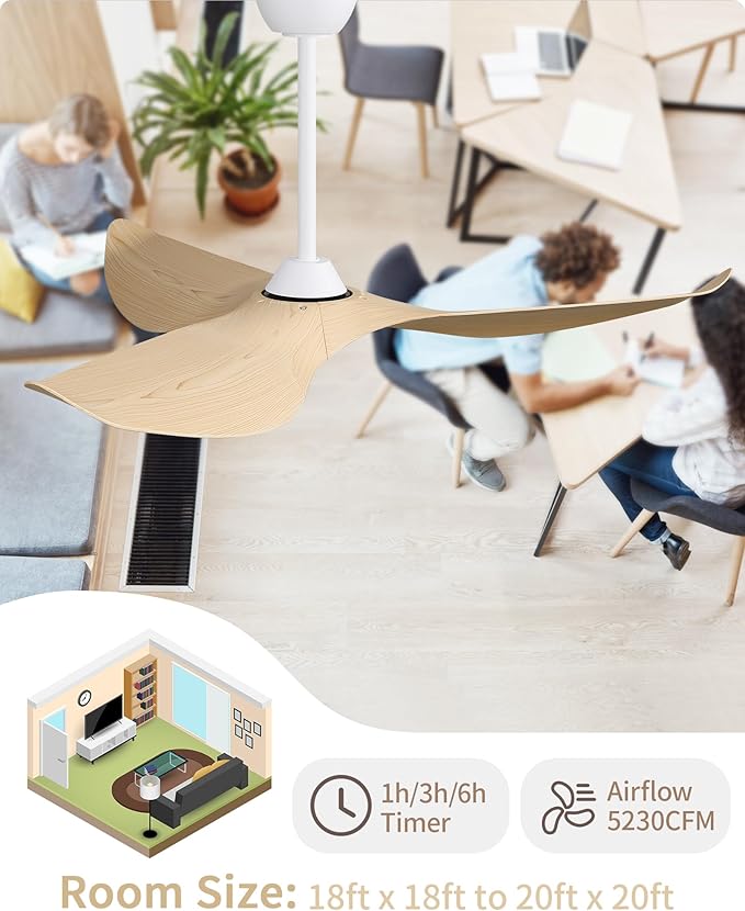 - Remote Control - The smart ceiling fan's remote control comes with almost all the functions you need, 6 wind speed, 2 rotation types and 1h/3h/6h timer make sure you can select the mode you want.