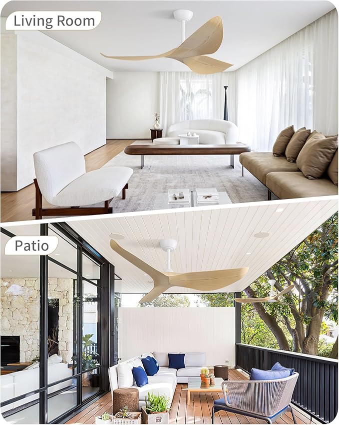 - Mordern Luxury Style - Paint wood finish ABS ceiling fan blades, pair up white case create a modern and luxury for your home rooms such as bedrooms, farmhousess, covered patios.