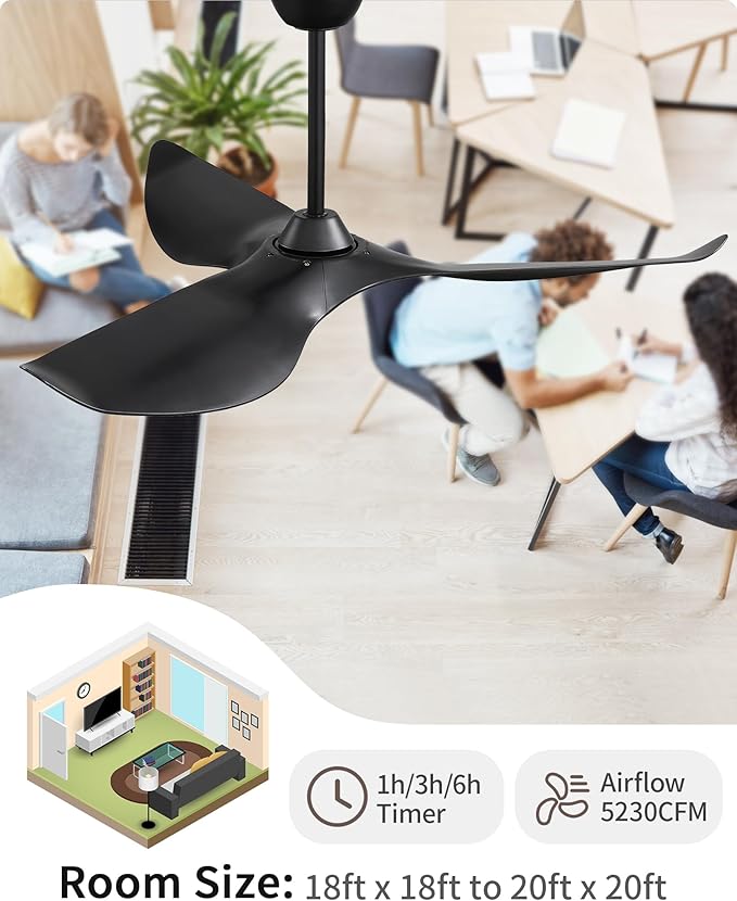 - Modern Luxury Style - Painted black finish ABS ceiling fan blades paired with 3 black downrods create a modern and luxurious ambiance for your home's rooms, such as bedrooms, farmhouses, covered patios.