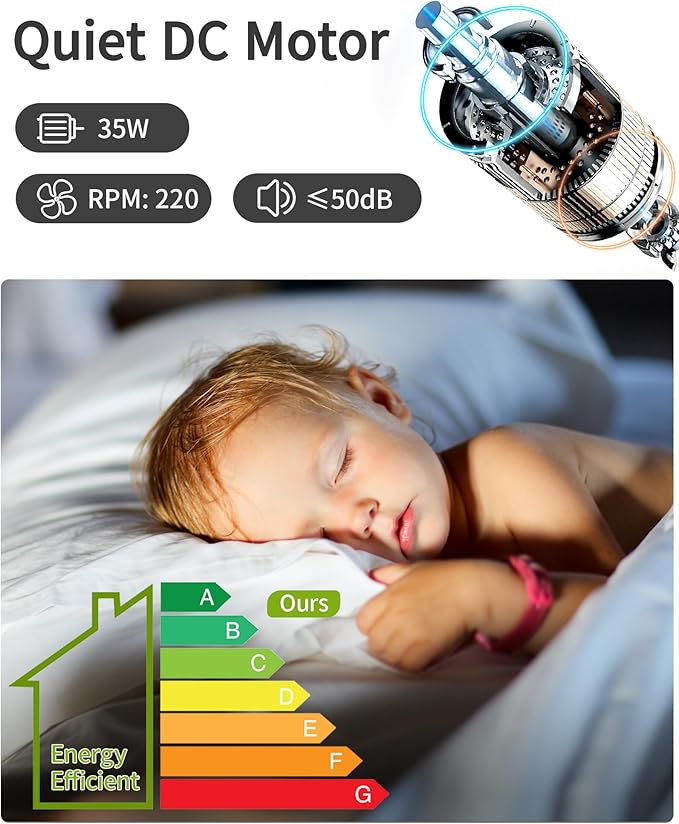 - Quiet Reversible DC Motor - Our ceiling fans are equipped with a reversible DC motor, maintaining high air speed and low noise operation while providing cool winds in summer and circulating hot air in winter.