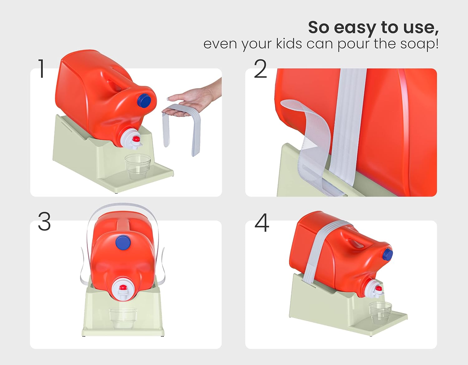 - [Safe Attachment:] The laundry detergent shelf or holder features a secure strap that firmly attaches and ensures your detergent bottle stays in place and minimizing the risk of accidental falls and spills.