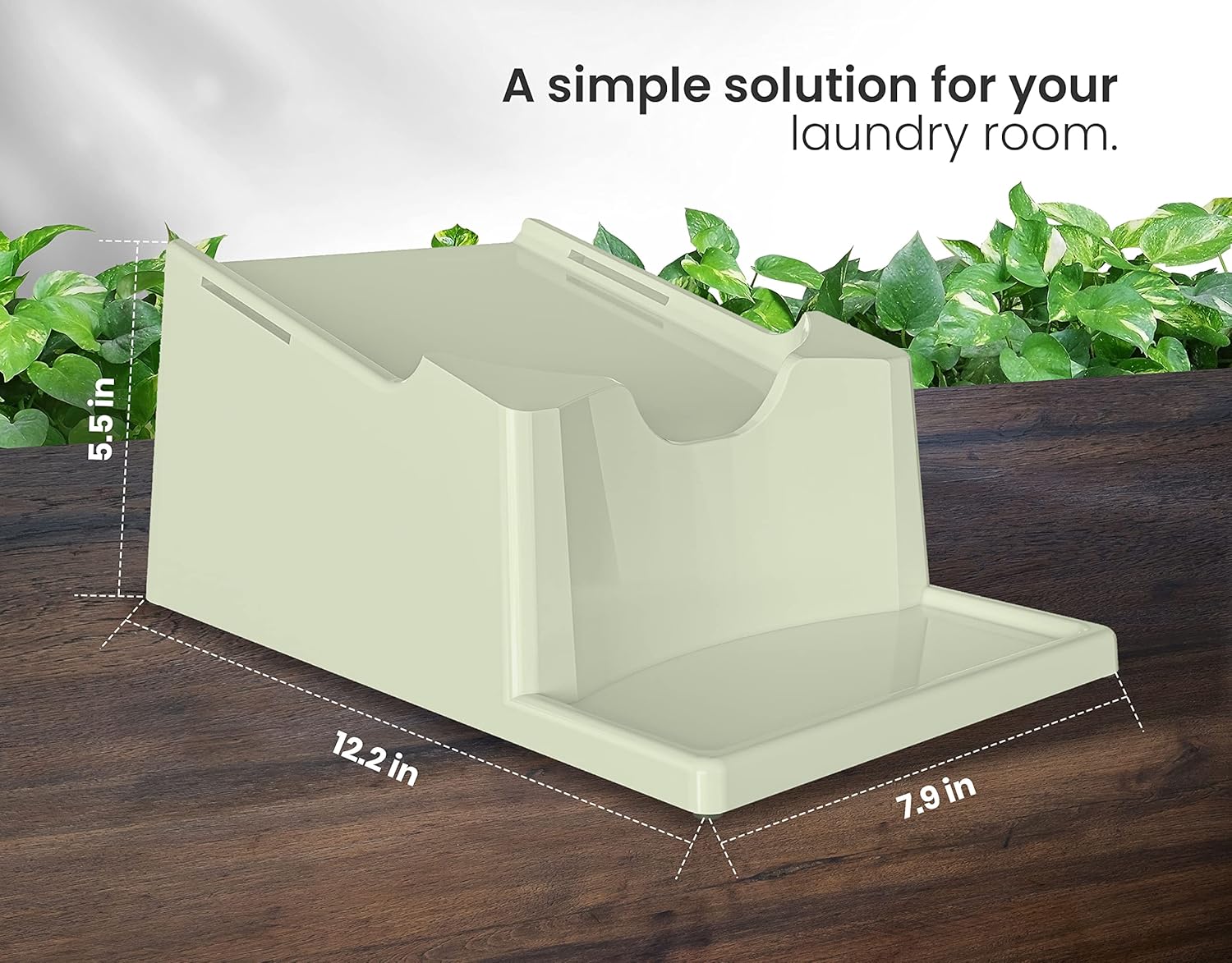- [Mess-Free Measuring:] The molded edge of this detergent holder for laundry room ensures your measuring cup stays in place, preventing drips and keeping your laundry space clean and organized.
