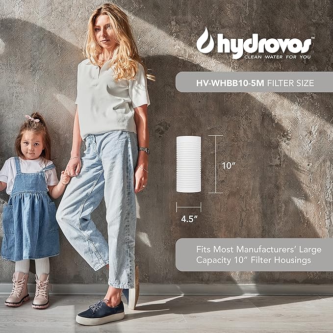 - BROAD APPLICABILITY – Hydrovos HV-WHBB10-5M fit Hydrovos 10” large capacity water filter housing, HV-WHBB10-PRV, as well as a wide variety of 10” length large capacity housings. The filter size 4.5” x 9 7/8” is an industry standard followed by most manufacturers. Feel confident in your replacement filter choice!