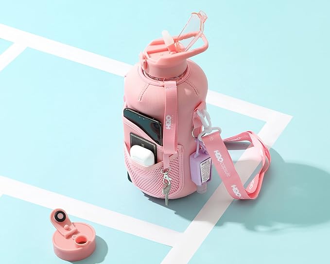 - HALF GALLON HYDRATION WITH REMOVABLE STRAW: The extra large pink 2.2L / 74 oz hydro jug holds all the water you need to stay hydrated while exercising. The reusable jug has a 2.25” wide mouth perfect for ice cubes, and removable straw for easy drinking.