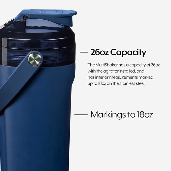 - 26oz CAPACITY: The MultiShaker has a capacity of 26oz with the agitator installed, and has interior measurements marked up to 18oz on the stainless steel.