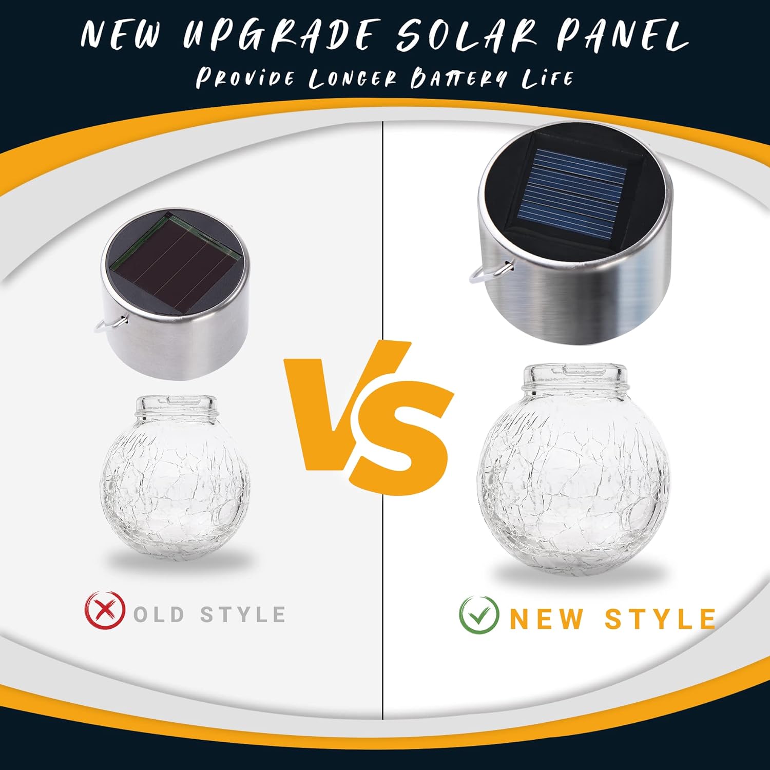 - 【Premium Material】Featuring a shimmering crackle glass globe, a sturdy stainless-steel hook and newest upgrade solar panel, solar hanging lights add a superior light effect to your garden