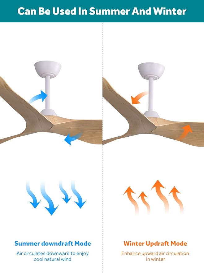 - Outdoor & Indoor Ceiling Fan: The 3 blade ceiling fan combines with white finish and light wood grain ABS blades, moisture-proof level, great for any indoor and covered outdoor space, living room, bedroom, child room, covered patio and covered porch.