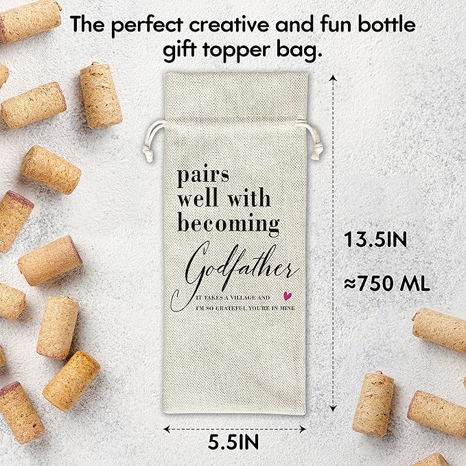 Godfather Wine Gift Bags - Gift for Godfather, Uncle, Godparent, Baptism - Reusable Burlap With Drawstring Gift Bag (5.5"x 13.5")-1 Pcs/jiu063