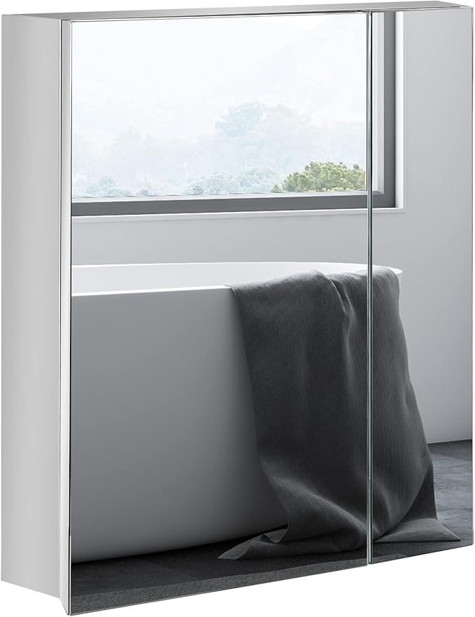 - Upgrade Your Storage: Save space by keeping toiletries behind your mirror. This bathroom wall cabinet will give you that added shelving you need to expand your bathroom storage.