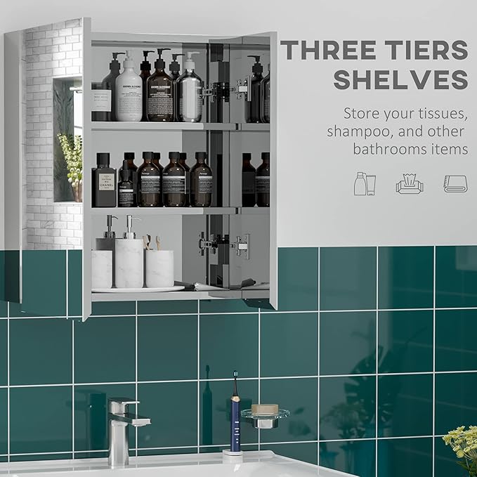 - Start Your Day: You can put your toiletries on the three shelves inside the bathroom medicine cabinet. Each in-between space allows height for taller items of up to 7.5". Allow a versatile range of item sizes.