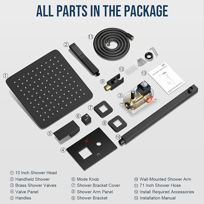 - Satisfaction Commitment: Before installation, please read our instructions carefully. Our shower system provides 10-year parts replacement. If you encounter any product problems, please feel free to contact us, we will do our best to help you!