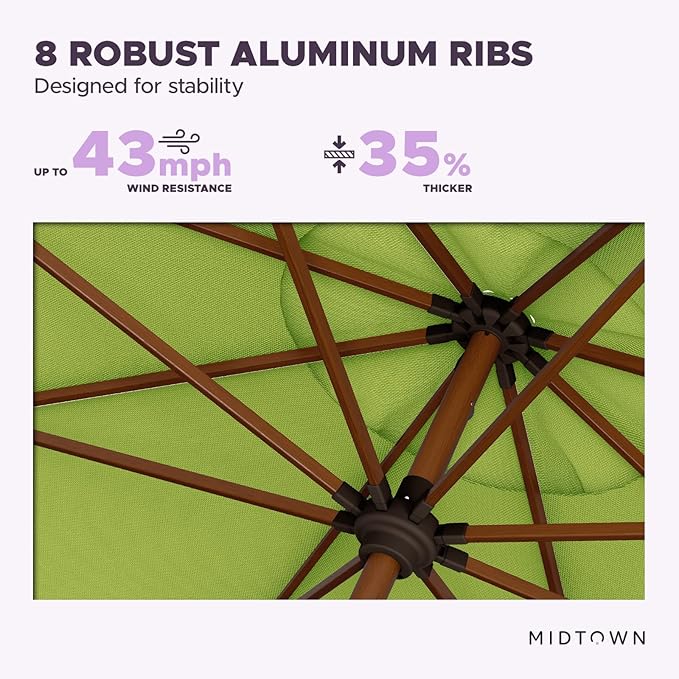 Midtown Umbrellas Sunbrella Umbrella Outdoor Patio Umbrella 2-9 Feet in Sunbrella Macaw Acrylic Fabric, Auto-Tilt Aluminum Frame For Backyard Umbrella, Deck Umbrella & Porch Umbrella - Wooden Pole