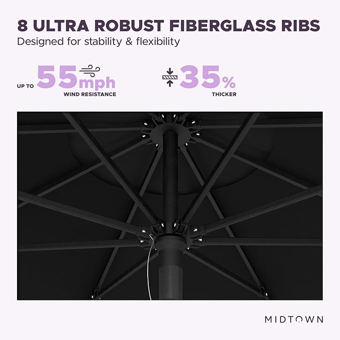 - [ WARRANTY ]: 10 year warranty on the Midtown Umbrella frame along with 10 year warranty on the Terylast fabric.