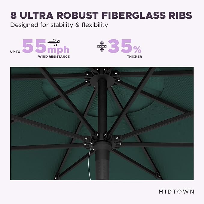 - [ WARRANTY ]: 10 year warranty on the Midtown Umbrella frame along with 10 year warranty on the Terylast fabric.