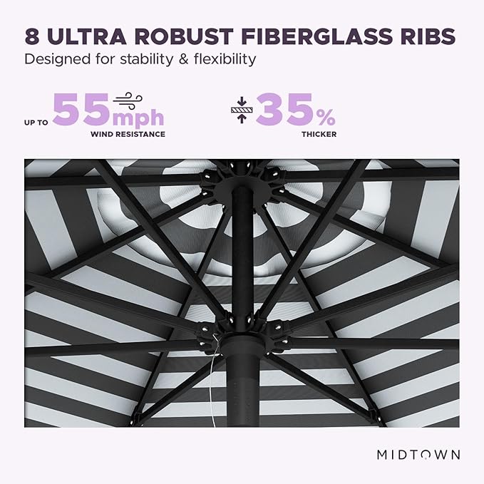 - [ WARRANTY ]: 10 year warranty on the Midtown Umbrella frame along with 10 year warranty on the Terylast fabric.