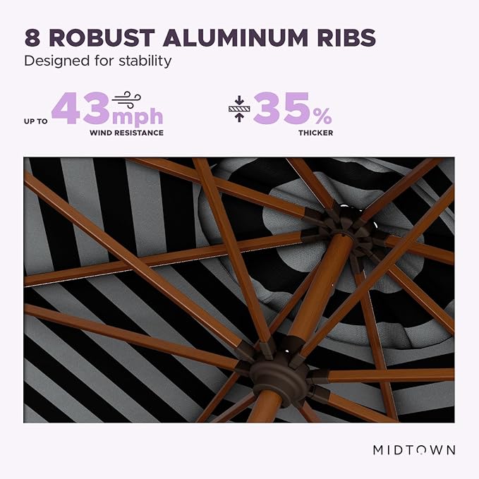 Midtown Umbrellas Sunbrella Umbrella Outdoor Patio Umbrella 2-9 Feet in Black & White Acrylic Fabric, Auto-Tilt Aluminum Frame For Backyard Umbrella, Deck Umbrella & Porch Umbrella - Wooden Pole