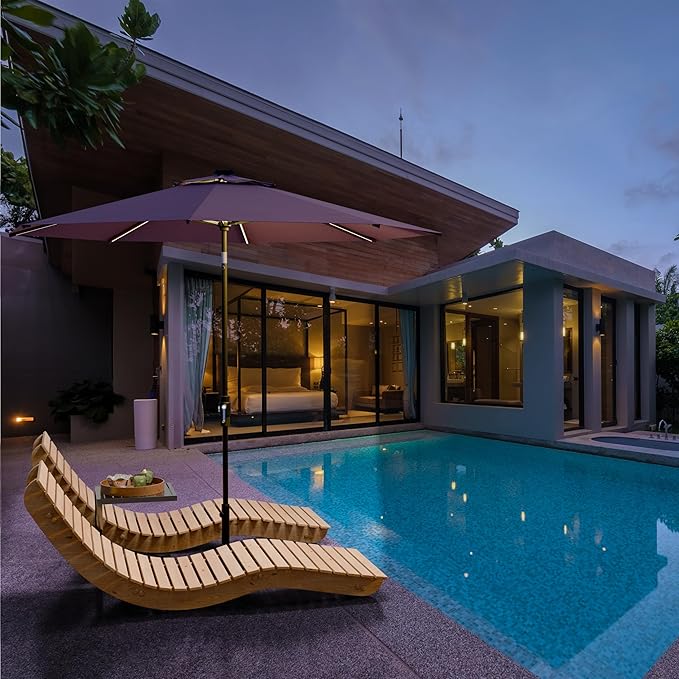 - [ INTELLIGENT DESIGN ]: Aluminum Pole: We don’t use rusting iron or steel! This patio umbrella with lights has a thick 2.5mm wall that is rustproof and weather resistant that will provide peace of mind even under rainy weather. Both Terylast or Sunbrella fabrics are waterproof and solution dyed for optimal fade resistance under the beaming sun.