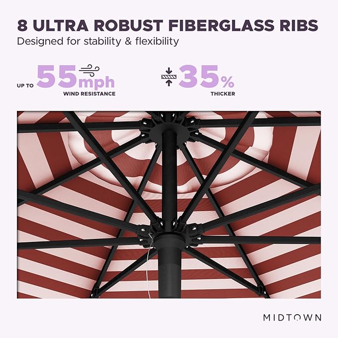 - [ WARRANTY ]: 10 year warranty on the Midtown Umbrella frame along with 10 year warranty on the Terylast fabric