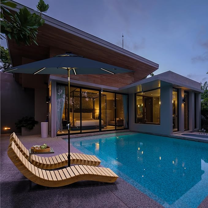 - [ INTELLIGENT DESIGN ]: Aluminum Pole: We don’t use rusting iron or steel! This pool umbrella has a thick 2.5mm wall that is rustproof and weather resistant that will provide peace of mind even under rainy weather. Both Terylast or Sunbrella fabrics are waterproof and solution dyed for optimal fade resistance under the beaming sun.