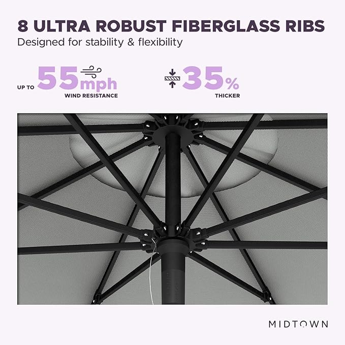 - [ WARRANTY ]: 10 year warranty on the Midtown Umbrella frame along with 10 year warranty on the Terylast fabric