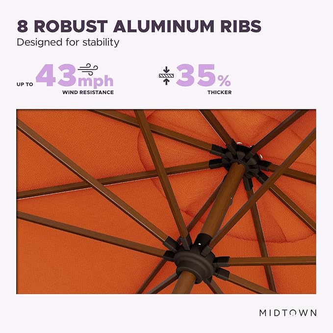 Midtown Umbrellas Sunbrella Umbrella Large Patio Umbrella 2-10 Feet in Canvas Tuscan Fabric, Auto-Tilt Aluminum Frame Backyard Umbrella, Deck Umbrella, Garden Umbrella & Porch Umbrella - Wooden Pole