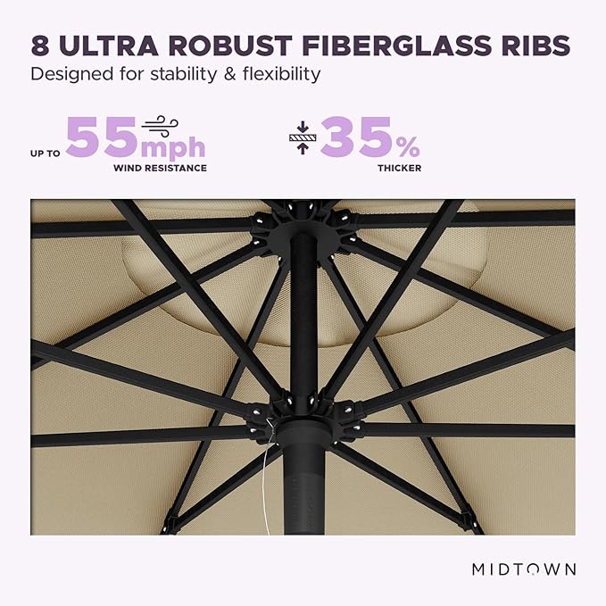 - [ WARRANTY ]: 10 year warranty on the Midtown Umbrella frame along with 10 year warranty on the Terylast fabric.