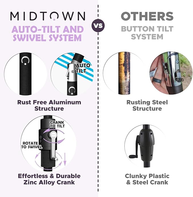 - [ WARRANTY ]: 10 year warranty on the Midtown patio outdoor umbrella frame along with 5 year warranty on the Sunbrella fabric.