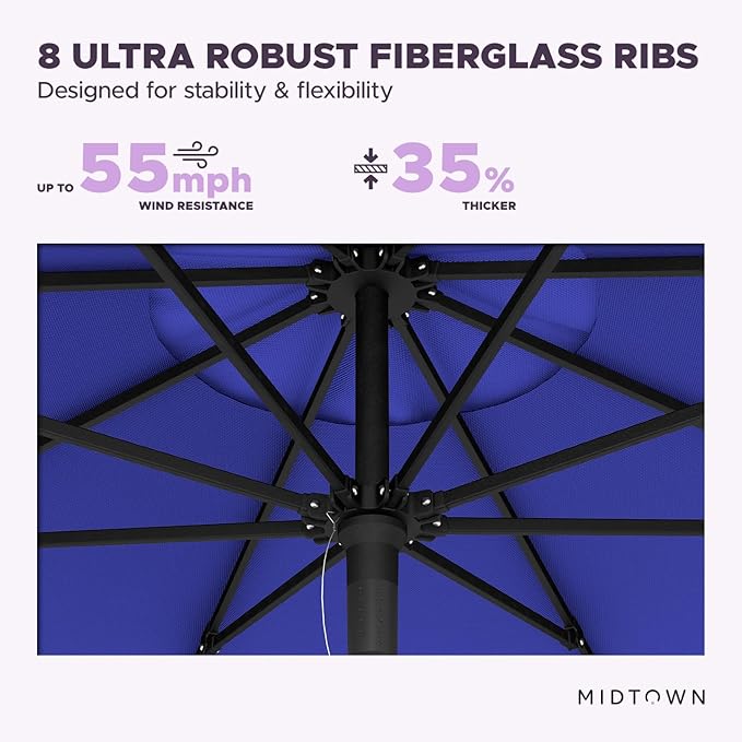 Midtown Umbrellas Push and Pop 10 Feet Outdoor Umbrella, Royal Blue Polyester Fabric - Fiberglass Ribs Deck Patio Umbrella, Backyard Umbrella, Garden Umbrella & Pool Umbrella - Black Pole