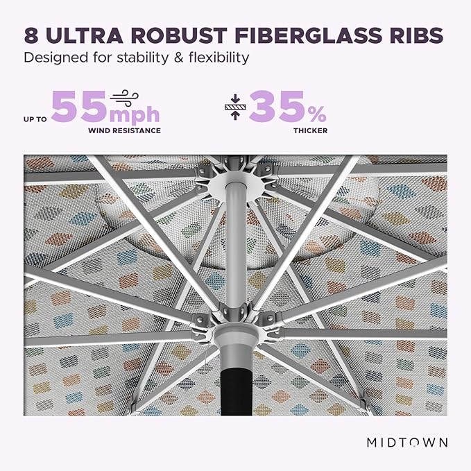 - [ WARRANTY ]: 10 year warranty on the Midtown Umbrella frame along with 5 year warranty on the Sunbrella fabric