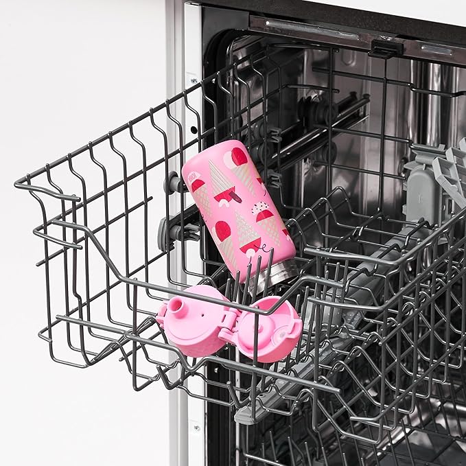 Ion8 Kids Water Bottle, Steel 400 ml/13 oz, Leak Proof, Easy to Open, Secure Lock, Dishwasher Safe, Flip Cover, Carry Handle, Easy Clean, Durable, Scratch Resistant, Raised Print, Ice Creams Design