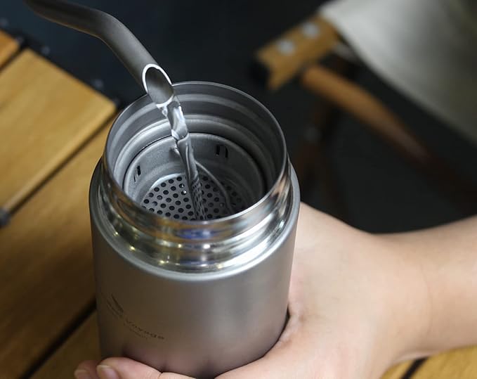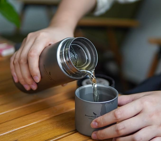 Boundless Voyage Titanium 300ml/450ml Vacuum Water Bottle with Tea Filter Double-Walled Lightweight Leak-Proof Sport Water Bottle for Travel Outdoor Office (15 fl oz)