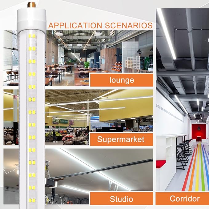 - HIGH QUALITY LIGHT TUBE. ONLYLUX led light adopts high quality LED chips,International standard shape for 8 ft tube light FA8 Base with a long lifespan, no flicker, no noise, non-polluting.