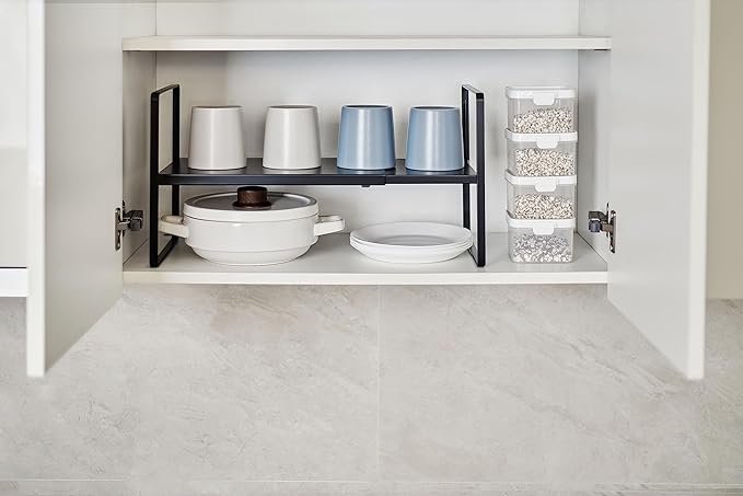 - MULTIFUNCTIONAL STORAGE: Using this cabinet shelf provides you with more storage space and allows for organizing various items such as bowls, cups, plates, dishes, snacks, books, magazines, spices and more. With this cabinet organizer, you can better organize your items and easily access the items you need.