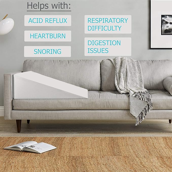 Greaton, 24-Inch Mattress System Bed Wedge Pillow Foam Incline, Multi-Purpose, Comfortable, Heartburn, Legs and Back Support for Acid Reflux, Increases Blood Flow, Promotes Breathing, White