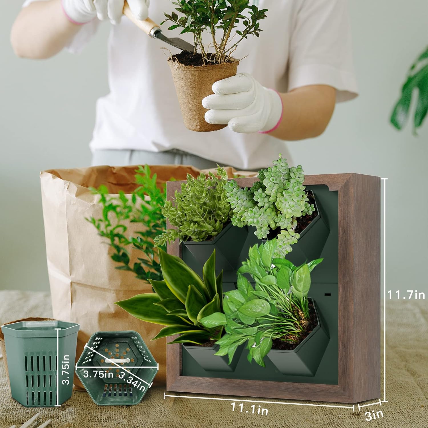 - Living wall planter, multi-combination arrangement, can create your plant vertical garden indoors,wooden frame pot without flower soil weight 2.14lb (Not including screws)