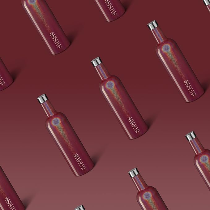 BrüMate Winesulator 25 Oz Triple-Walled Insulated Wine Canteen Made Of Stainless Steel, 24-hour Temperature Retention, Shatterproof, Comes With Matching Silicone Funnel (Glitter Merlot)
