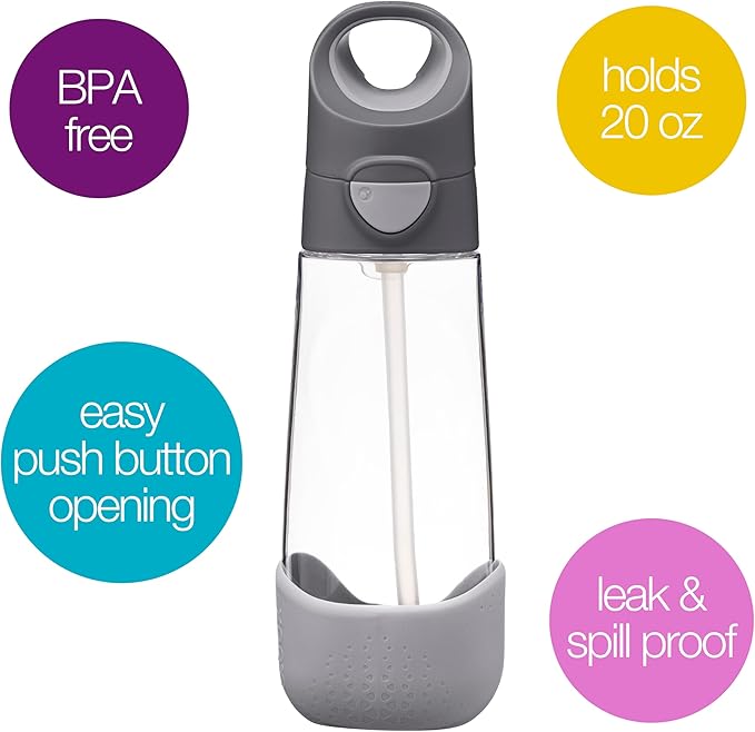 - B.BOX 20 OZ TRITAN DRINK BOTTLE: Our lightweight and super durable Tritan straw water bottle keeps kids hydrated at school, sports and on the go. Features a unique triangle shape for easy grip, designed for little hands to hold and control.