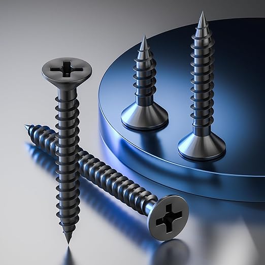(500Pcs) #8x3/4 Black Wood Screw Quick Metal Self Tapping Flat Head