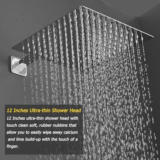 Chrome Shower System Bathroom Shower Faucet Set with Tub Spout Wall Mounted 12 Inch Shower Head and Handle Set with Handheld 3 Function Tub and Shower Trim Kit with Rough-in Valve