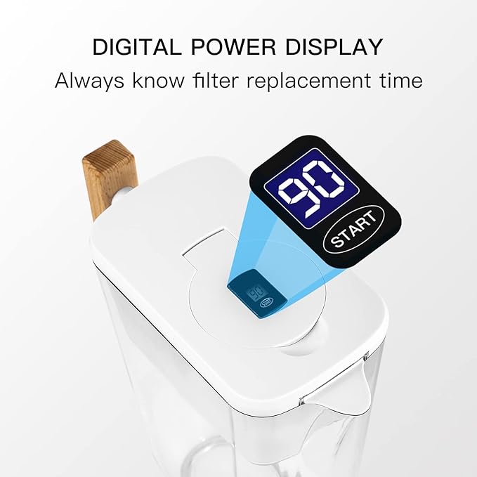 - [Double Thickening]: Our water filtration pitcher's body and lid are constructed of ABS food-grade material. The water filter thickness of the pitcher may reach 0.32 inches, and the handle is constructed of natural solid wood. Our water purifier pitchers have a 5-times longer service life than other models, you enjoy clean and filtered wate.