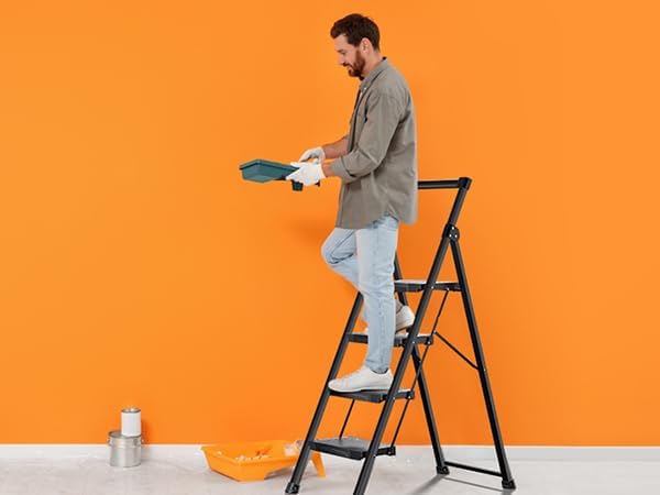 - 【SECURITY AND STABILITY】The 4 step ladder was constructed out of high-strength ultra wide and thick steel pipe,strong bearing beam,trangle strenghten support,sturdy connection structure to ensure the ladder stronger and more durable,good oxidation resistance and corrosion resistance