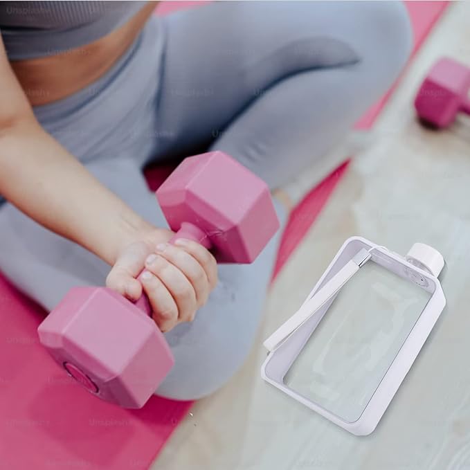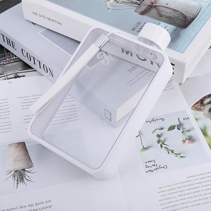 Flat Water Bottle, Portable A5 Water Bottle, 13oz Flat Travel Flask for Camping Fitness Gym (White)
