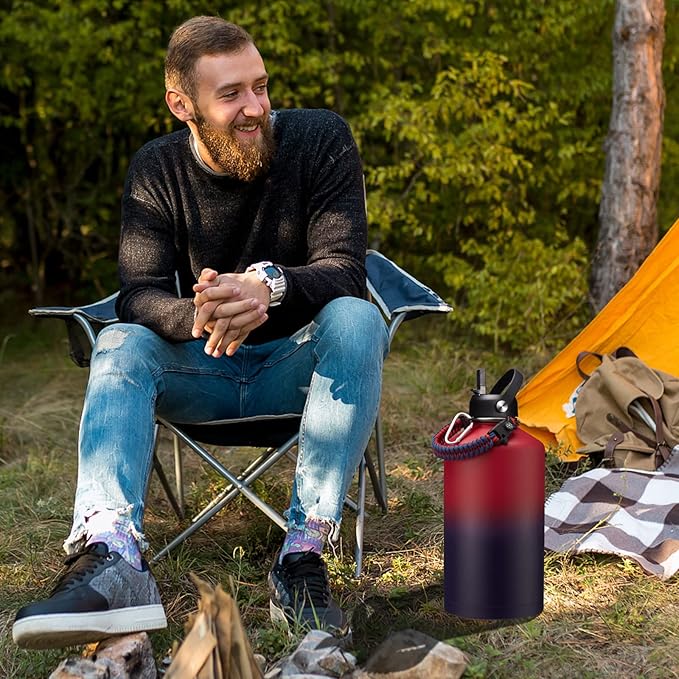 - PERSONALIZATION BOTTLE PARACORD HANDLE - 128oz Insulated water bottle with a pretty cool functional paracord handle which does more than meets the eye.?The survival strap cord is made of military-grade nylon and comes with a compass, safety loop, metal carabiner, flint, igniter, and whistle, making it a functional and stylish addition to your water flask, is perfect for outdoor camping, hiking, fitness enthusiasts