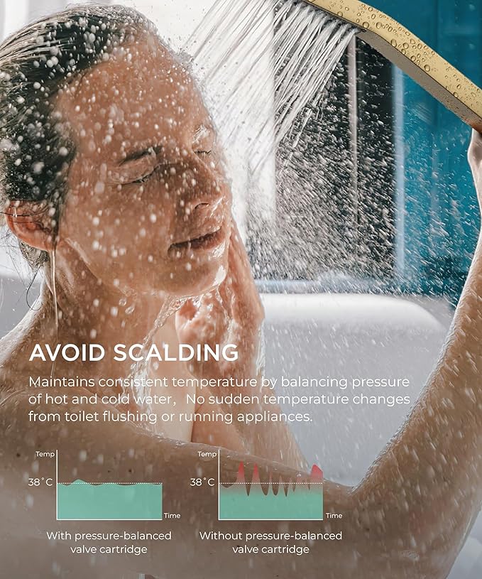 - Preventing Water Hammer: The pressure balance valve has two built-in check valves to effectively eliminate water hammer. Monitors the water pressure balance without sudden temperature changes from toilet flushing or running appliances