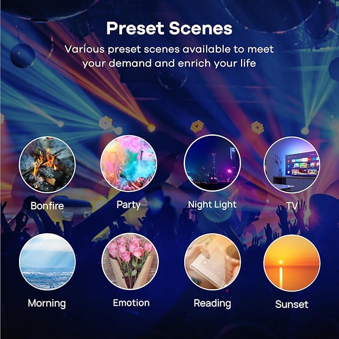 - 💡[Preset Scenes & Time Schedule] Schedule the Linkind smart bulb to auto-on/off on your routine on the app. Choose the preset scenes to decorate your house according to different festival.